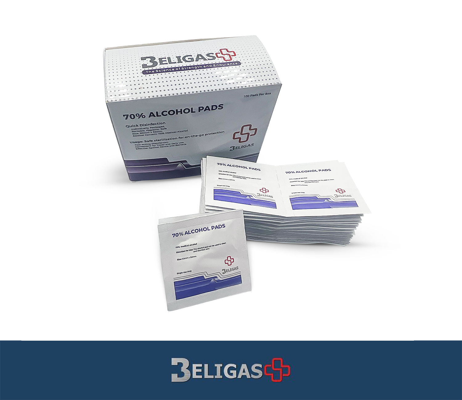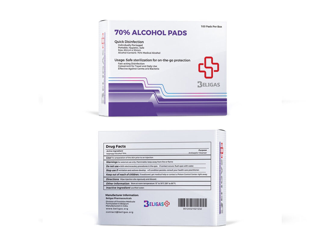 Beligas 70% Alcohol Pads are designed to meet the highest standards of hygiene and safety. Each pad is individually packaged to ensure portability and convenience, making them ideal for various environments and situations. Trust Beligas for your disinfection needs with our fast-acting, reliable alcohol pads.