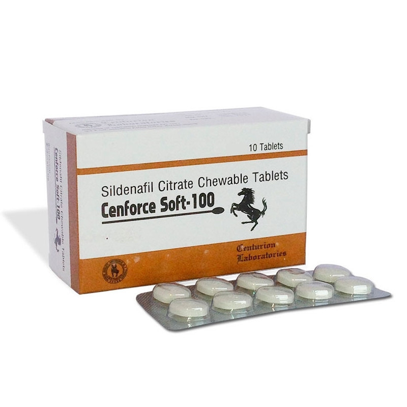 Cenforce Soft-100 (Sildenafil Citrate, Generic Viagra Soft Tab) is a chewable PDE5 inhibitor manufactured by Centurion Laboratories in India. It works like a charm as they are a fast acting chewables that get ground up a little bit and then swallowed into the stomach while taking the dosage. Because a chewable medication or supplement has been ground up by the teeth (and the salivary glands have been able to begin breaking the pill down with enzymes), the chewable product gets absorbed in the stomach slightly more quickly than a pill swallowed whole. This medication uses the same science of compounding.